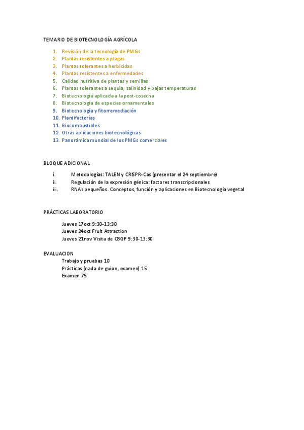 He publicado nuevos apuntes de 4º Biotecnología Agrícola: Biotec agricola temario