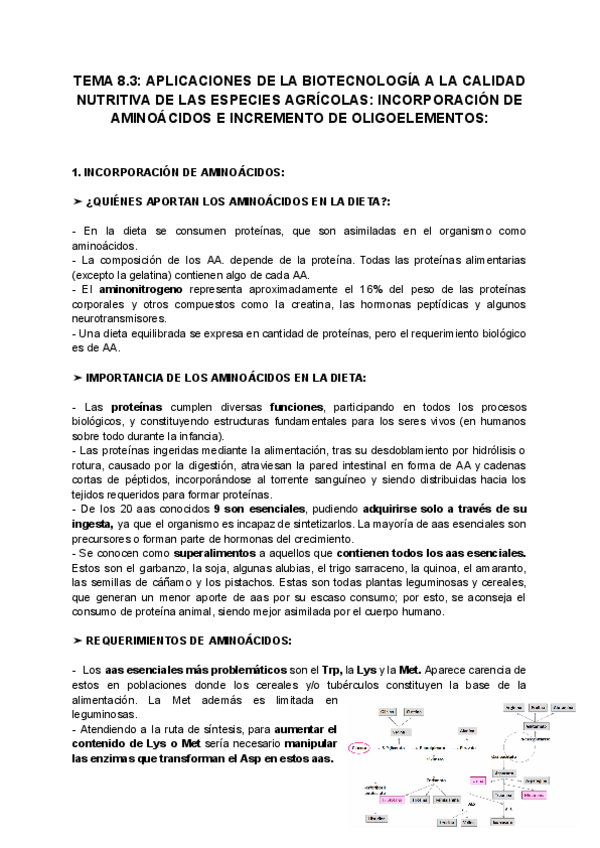 He publicado nuevos apuntes de 4º Biotecnología agroalimentaria: TEMA-8.3-APLICACIONES-DE-LA-BIOTECNOLOGIA-A-LA-CALIDAD-NUTRITIVA-DE-LAS-ESPECIES-AGRICOLAS-INCORPORACION-DE-AMINOACIDOS-E-INCREMENTO-DE-OLIGOELEMENTOS.pdf