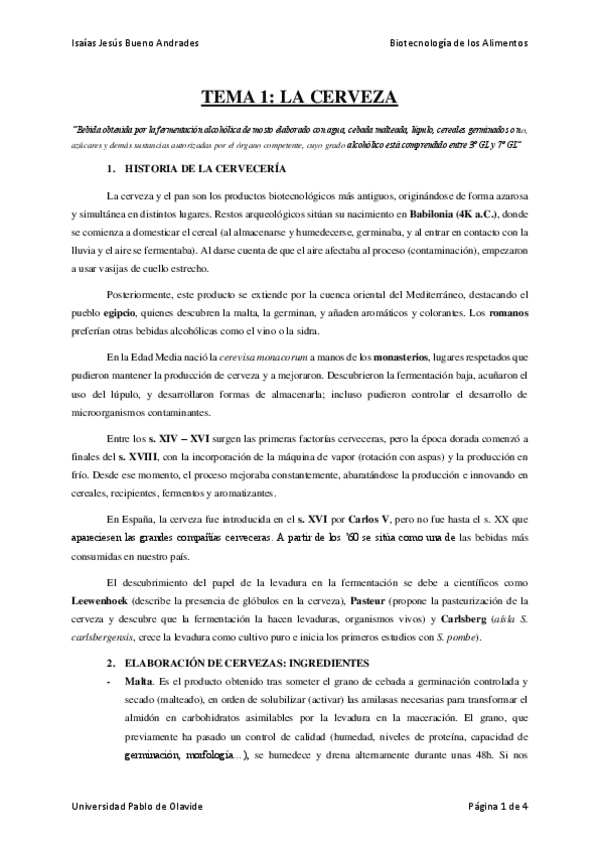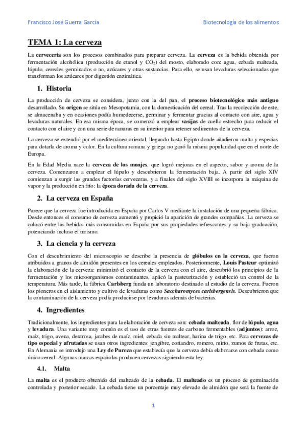 He publicado nuevos apuntes de 4º Biotecnología de los Alimentos: Tema 1. Cerveza CURSO 2020/21