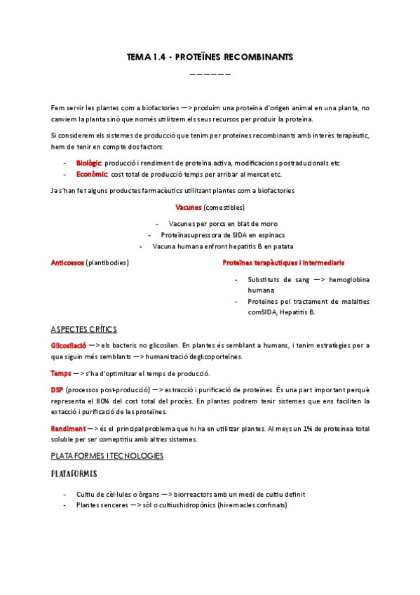 He publicado nuevos apuntes de 4º Biotecnología Farmacéutica: Industria: TEMA-1.4-PROTEINES-RECOMBINANTS.pdf