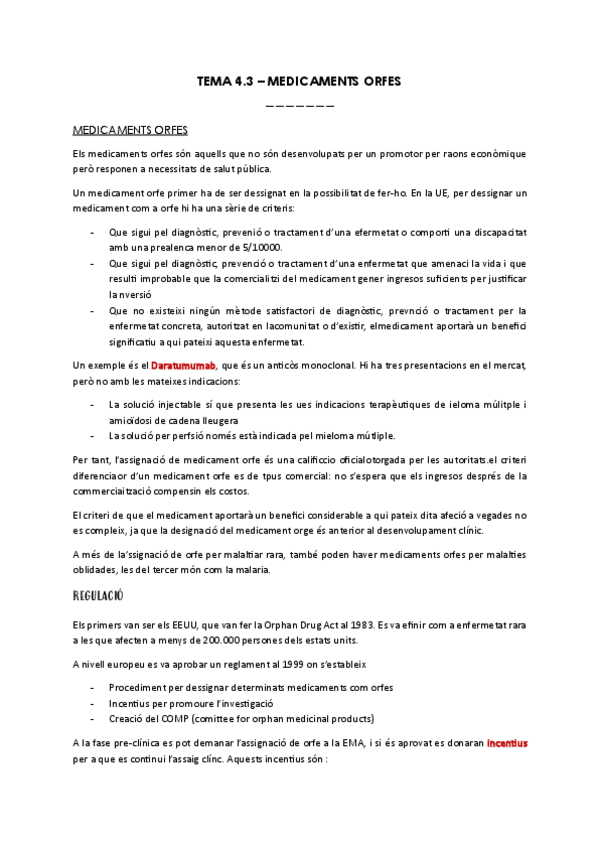 He publicado nuevos apuntes de 4º Biotecnología Farmacéutica: Industria: TEMA-4.3-MEDICAMENTS-ORFES.pdf