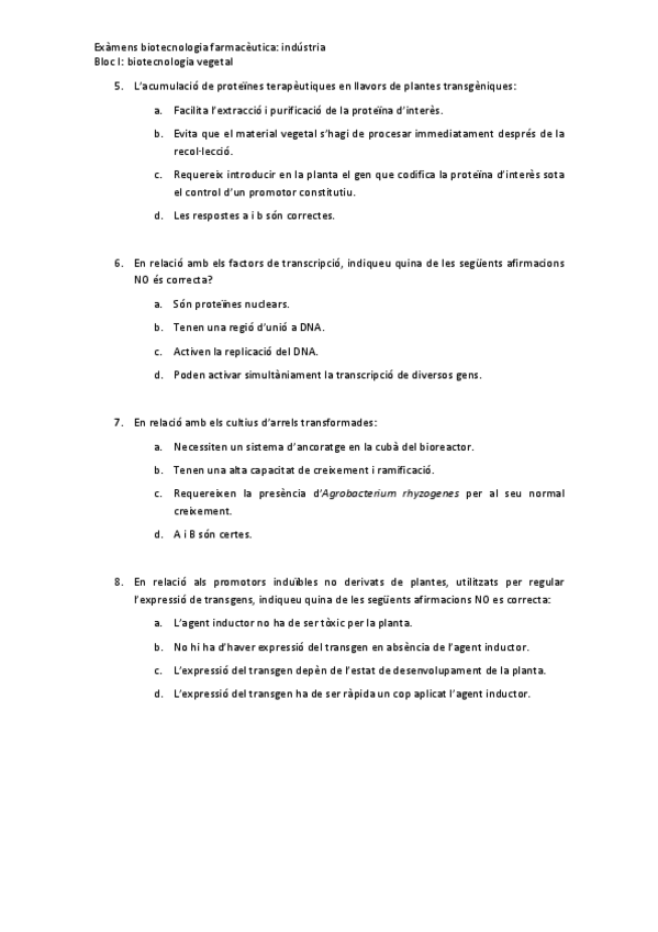 He publicado nuevos examenes de 4º Biotecnología Farmacéutica: Industria: Recopillacio-preguntes-examens-biotecnologia-vegetal-bloc-1bloc-I-sense-resposta.pdf