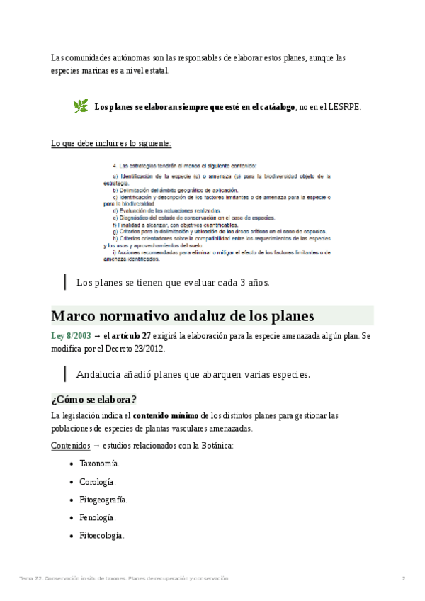 He publicado nuevos apuntes de 4º Botánica Ambiental y Aplicada: Tema 7.2. Conservación in situ de taxones. Planes de recuperación y conservación.pdf