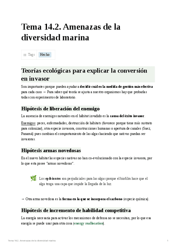 He publicado nuevos apuntes de 4º Botánica Ambiental y Aplicada: Tema 14.2. Amenazas de la diversidad marina.pdf