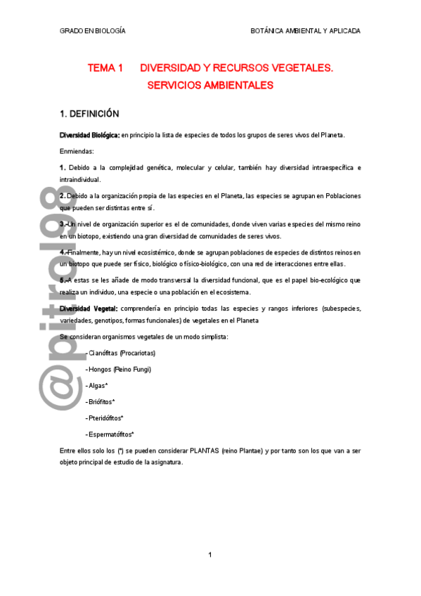 He publicado nuevos apuntes de 4º Botánica Ambiental y Aplicada: Tema 1. Diversidad vegetal y medio ambiente.pdf