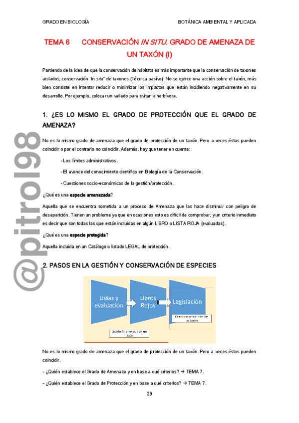 He publicado nuevos apuntes de 4º Botánica Ambiental y Aplicada: Tema 7.1. Conservación in situ. Grado de protección de un taxón.pdf