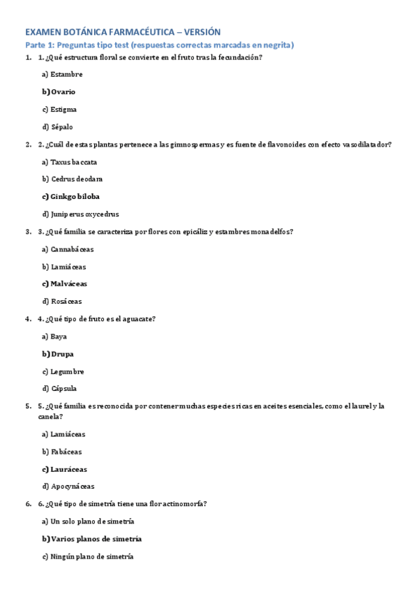 He publicado nuevos examenes de 2º Botánica Farmacéutica: Examen1PBotanica.pdf