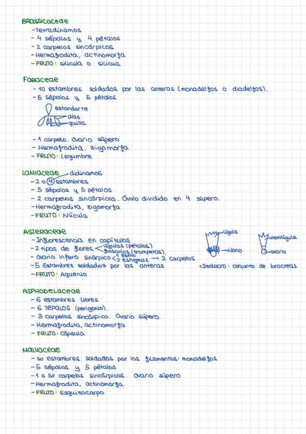 FAMILIAS MAS IMPORTANTES Y QUE MAS SALEN EN LAS PRACTICAS DE BOTANICA
