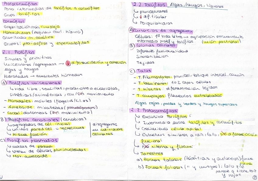 Esquemas muy completos 1er parcial botanica hongos y algas
