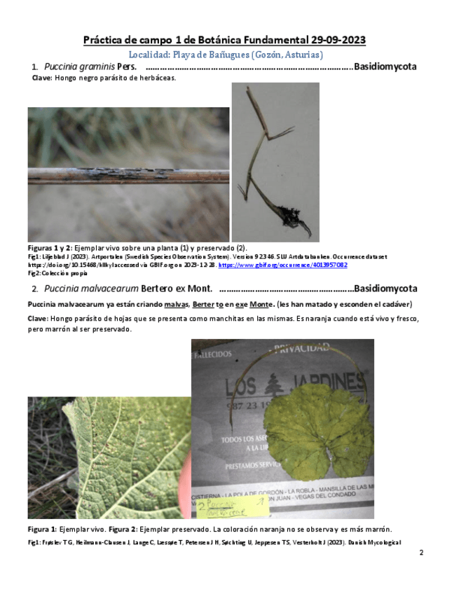 Visu de las especies estudiadas en las salidas de campo.