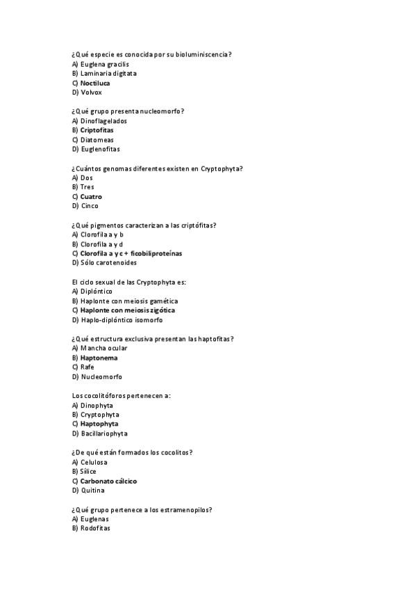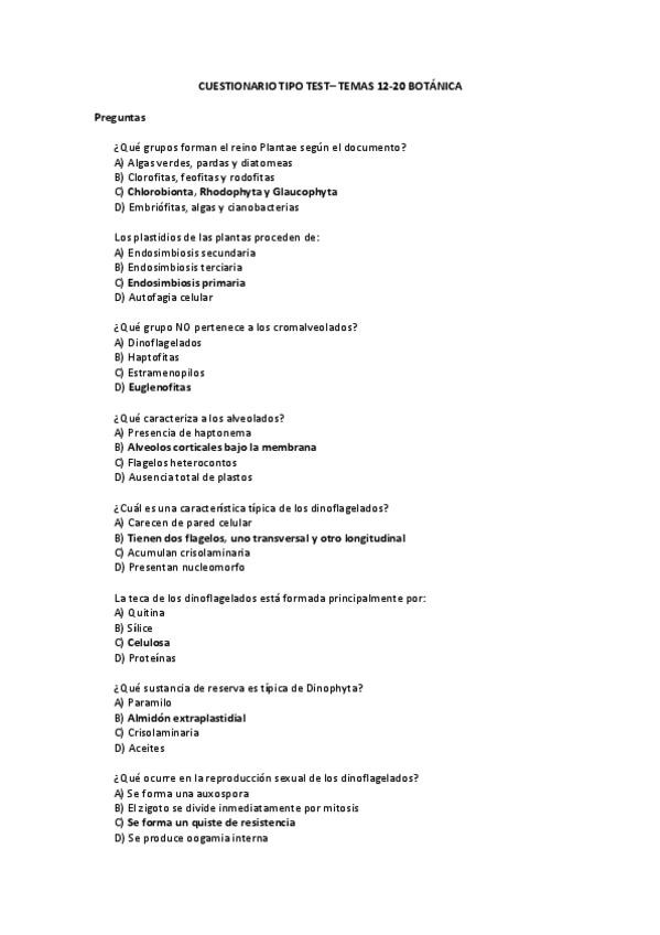 Posibles preguntas segundo parcial tipo test botánica para practicar.