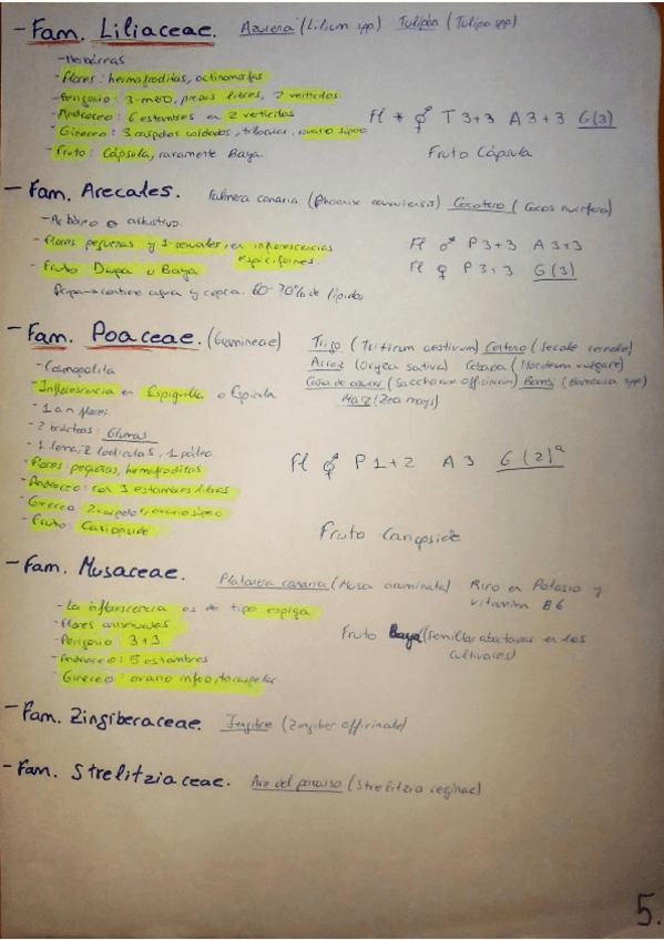 Liliaceae, Arecales, Poaceae, Musaceae, Zingiberaceae, Strelitziaceae