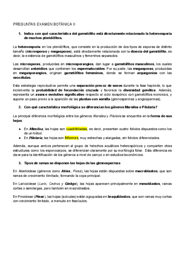 Recopilatorio de preguntas de Botánica II Nota en la asignatura: 7,4 solo con esto