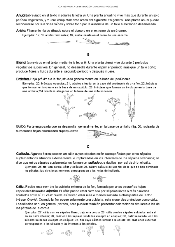 Resumen del índice-glosario del libro de Bonnier que se usa en prácticas de Botánica II para la determinación de plantas