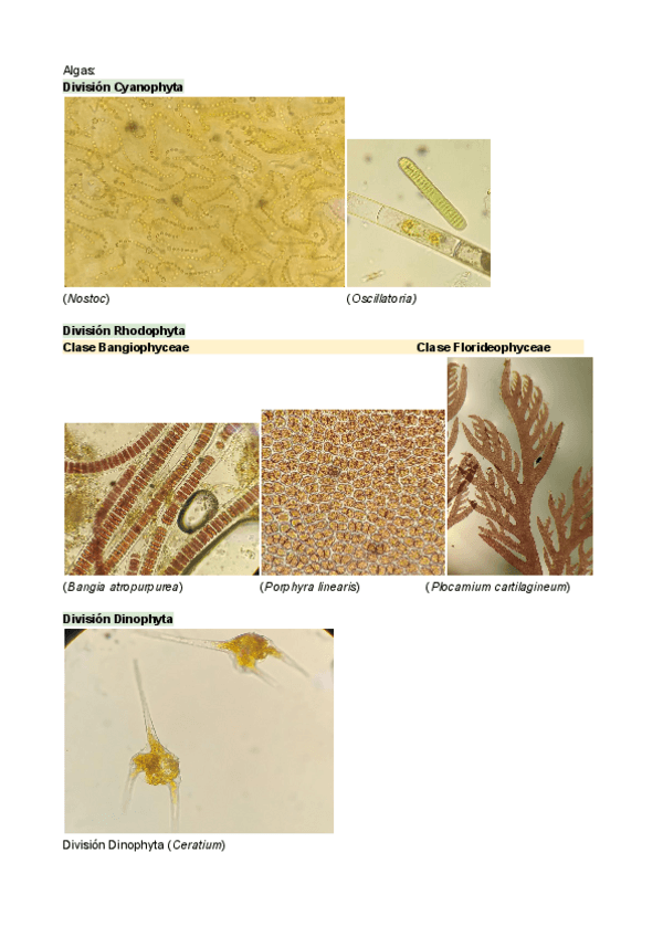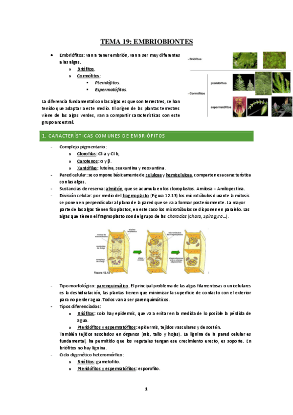 Resumen de algas briofitos y pinos