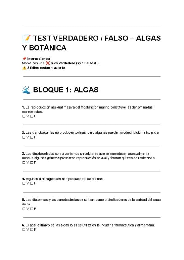 He publicado nuevos examenes de 1º Botánica: TEST-VERDADERO--FALSO-ALGAS-Y-BOTANICA.pdf