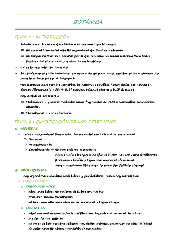 Apuntes Botánica (24/25). Recomendable completar TEMA 1 y TEMA 2 con teoría de algas, protozoos (caen en examen). También completar con las disposiciones florales y ubicaciones de las presentaciones