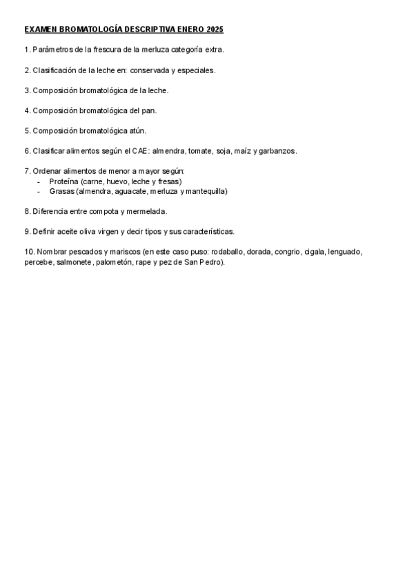 Esto fue lo que salió en el examen final de bromatología descriptiva en enero de 2025