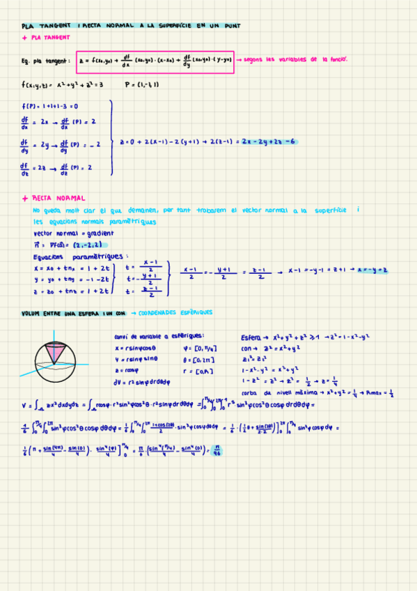 Superfícies paramètriques, integral de superfície, superfícies orientables, parametrització de S, divergència d'un camp, Teorema de Gauss (divergència), Teorema de Green