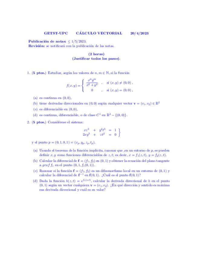 He publicado nuevos examenes de 1º Càlcul Vectorial: Reav resolt 03/2023.pdf