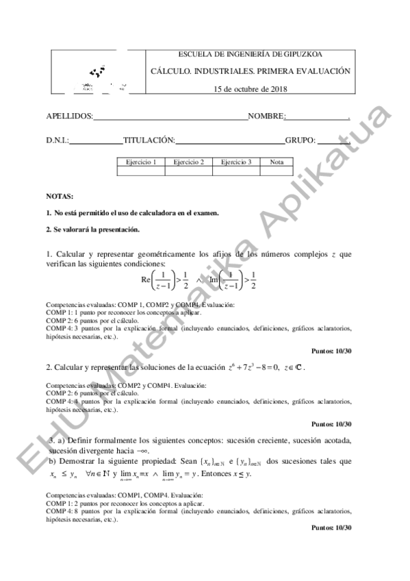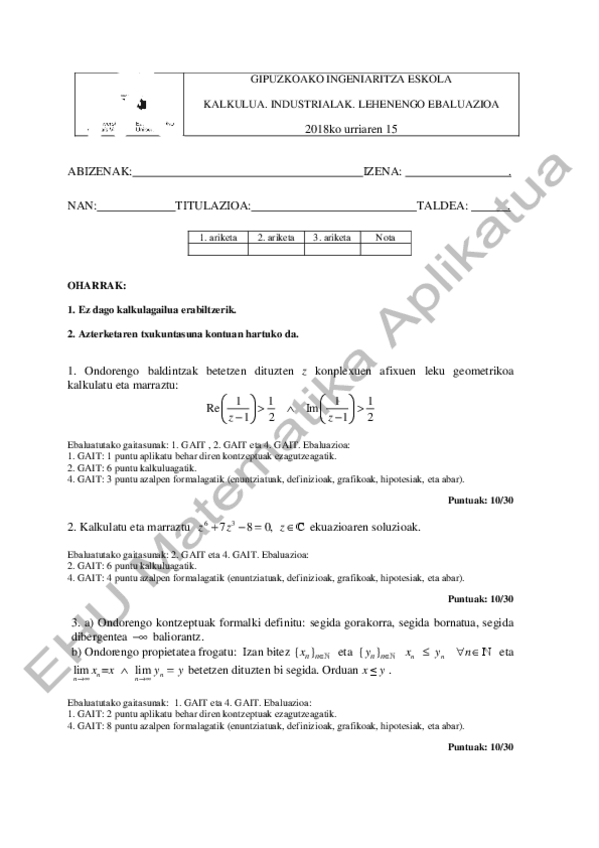 Kalkulo 2.kontrola 2021-22 EBATZITA-RESUELTO. Lehenik enuntziatua eta gero soluzioak. Donostiako igenieritza eskola.