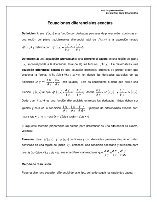 He publicado nuevos apuntes de 4º Cálculo de Ecuaciones Diferenciales Ordinarias: 10.-Ecuaciones-diferenciales-exactas-Articulo-autor-Enrique-Mateus-Nieves.pdf