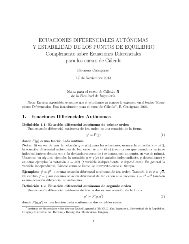 He publicado nuevos practicas de 4º Cálculo de Ecuaciones Diferenciales Ordinarias: 13.-Ecuaciones-diferenciales-autonomas-y-estabilidad-de-los-puntos-de-equilibrio-autor-Eleonora-Catsigeras.pdf