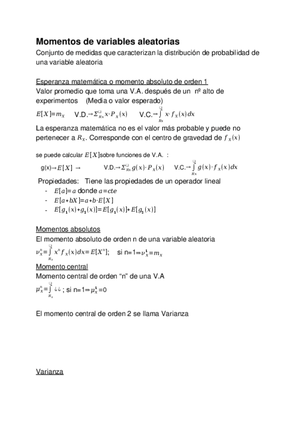 He publicado nuevos apuntes de 2º Cálculo de Probabilidades y Estadística: TEMA 2 MOMENTOS DE VARIABLES ALEATORIAS.docx