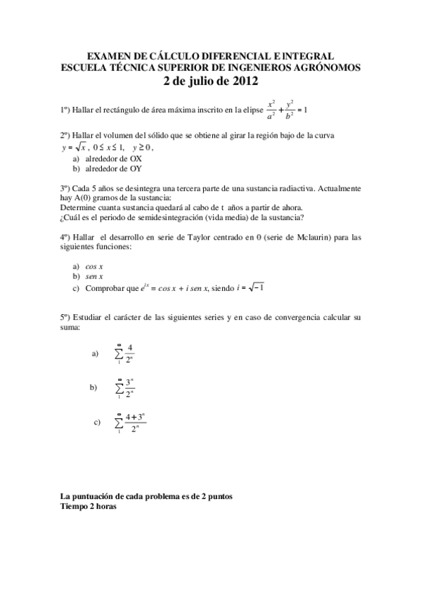 He publicado nuevos examenes de 1º Cálculo Diferencial e Integral: Examen junio 23