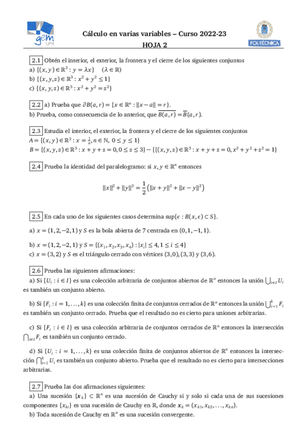 He publicado nuevos ejercicios de 1º Cálculo en Varias Variables: cvvhoja62023-1.pdf