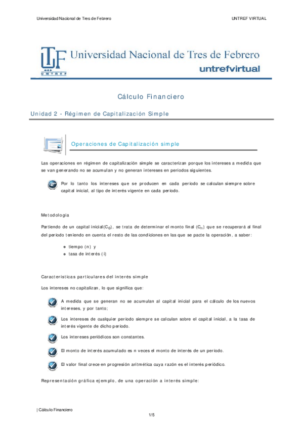 El documento trata de la teoria del interes explicando la capitalizacion el interes simple y sus formulas matematicas con ejemplos practicos