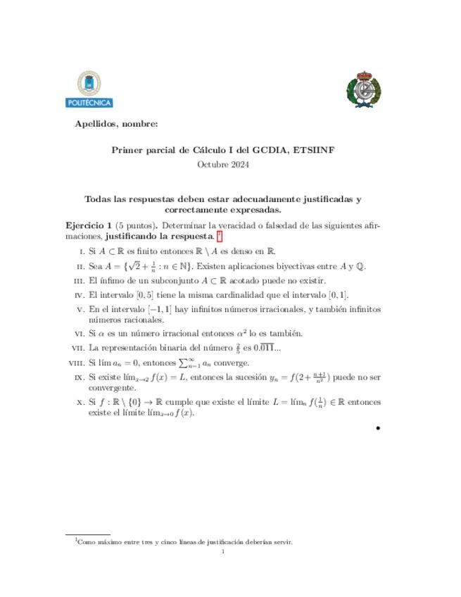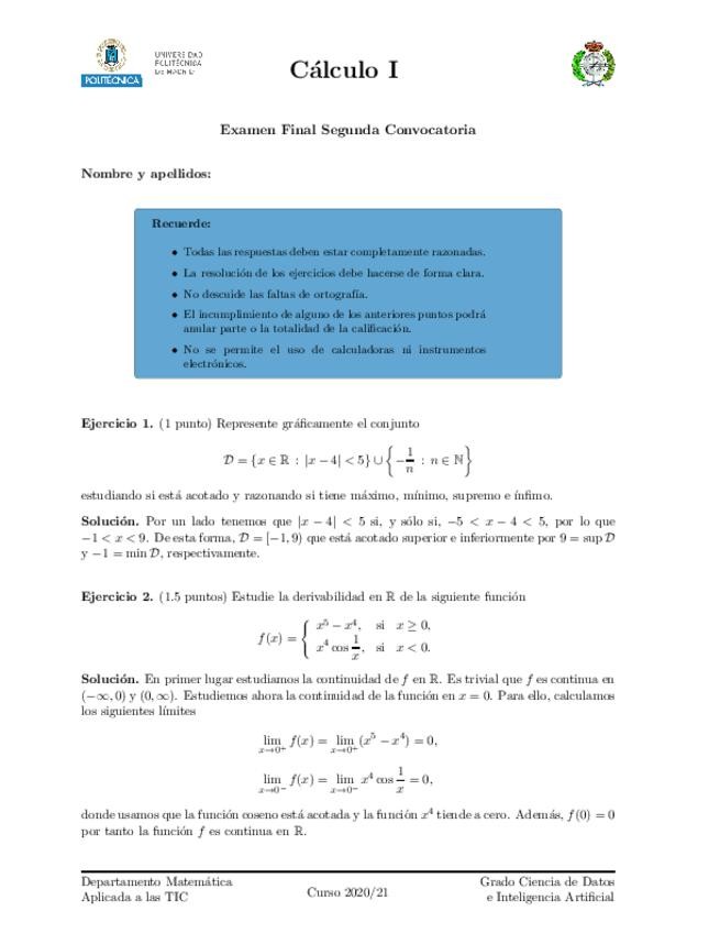 Recopilación exámenes resueltos Cálculo I GCDIA para repasar