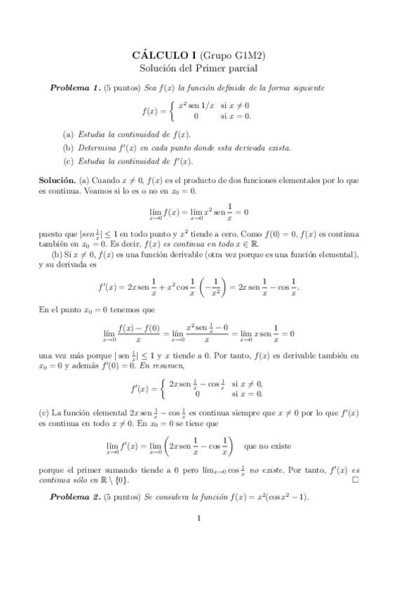 Parciales con soluciones calculo I