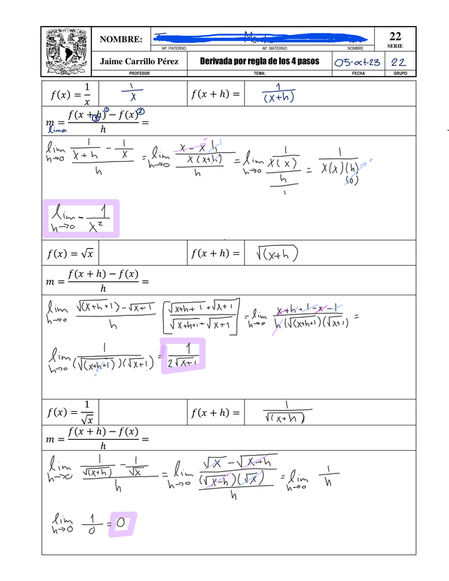 He publicado nuevos ejercicios de 1º Cálculo I: S22.-Derivada-por-regla-de-los-4-pasos.pdf