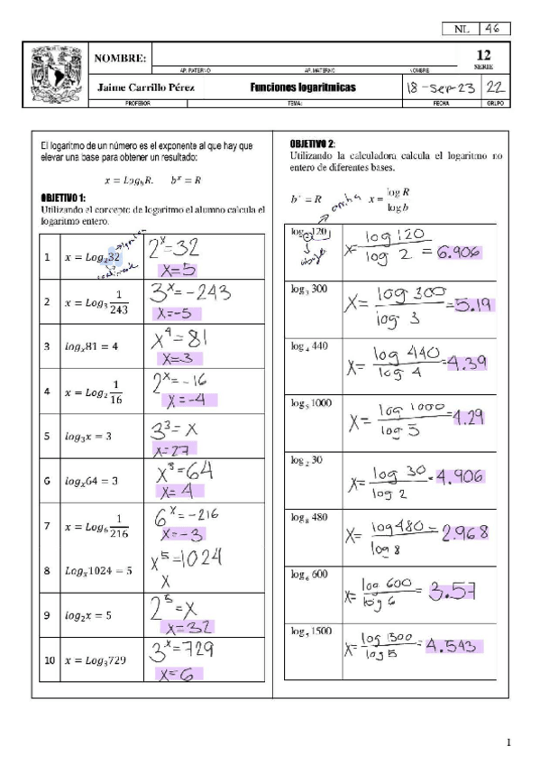 He publicado nuevos ejercicios de 1º Cálculo I: Funciones-Logaritmicas.pdf