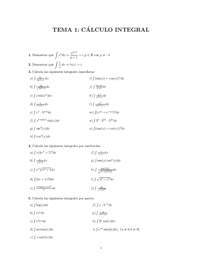 He publicado nuevos ejercicios de 1º Cálculo I: Ampliación ejercicios integrales