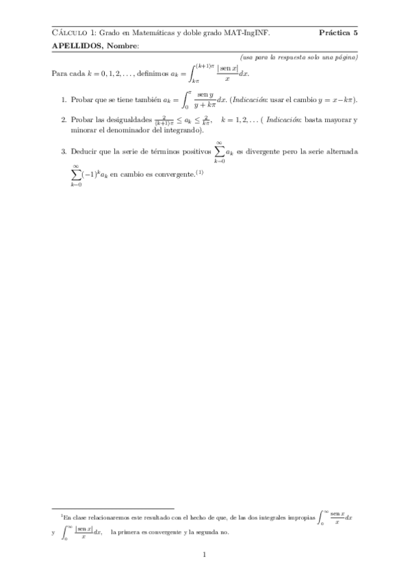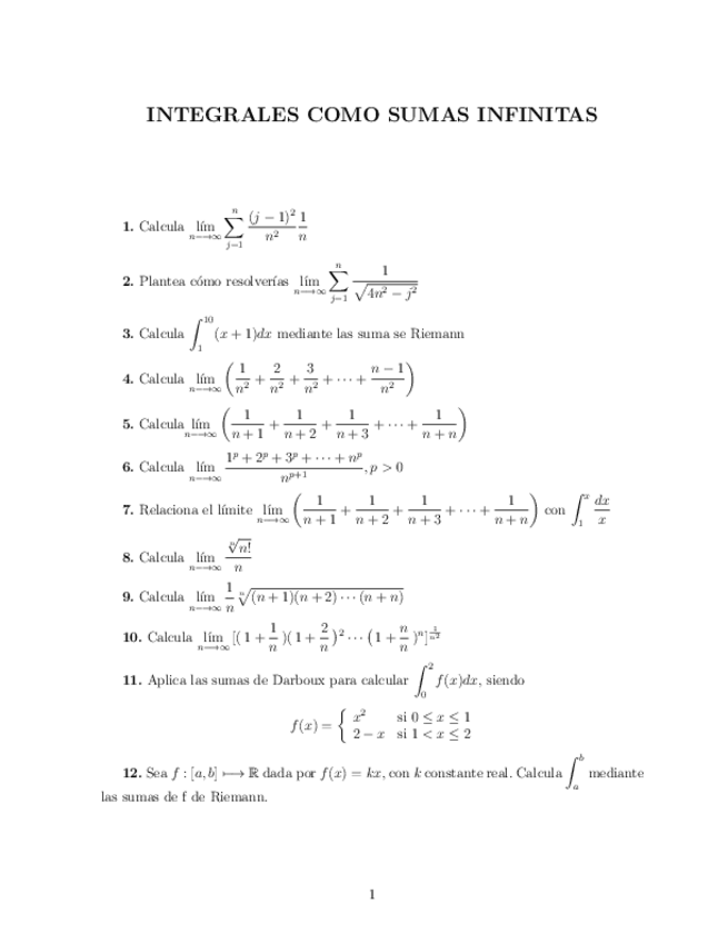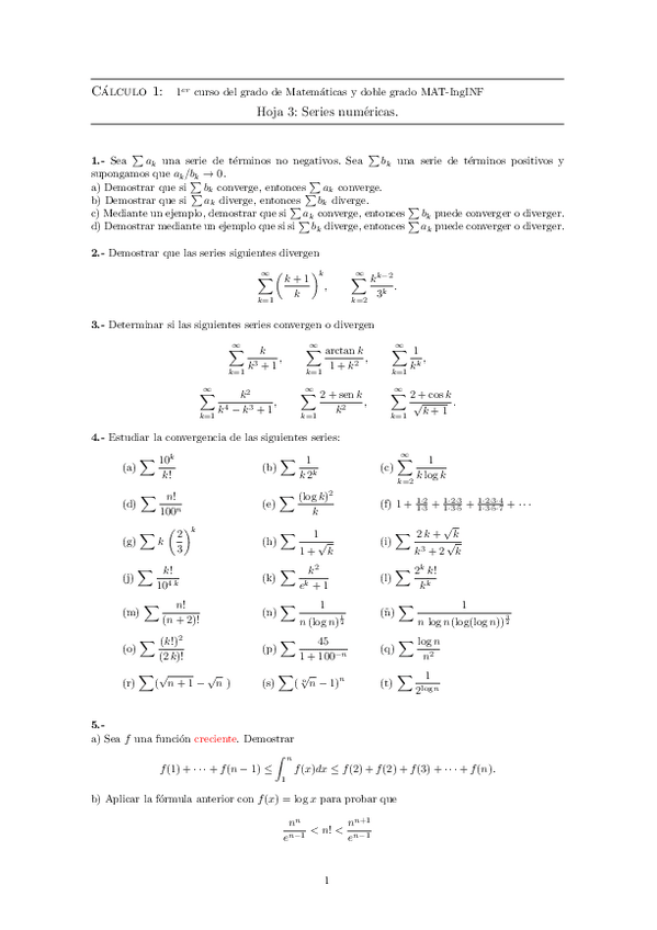 He publicado nuevos ejercicios de 1º Cálculo I: Ejercicios integrales y series