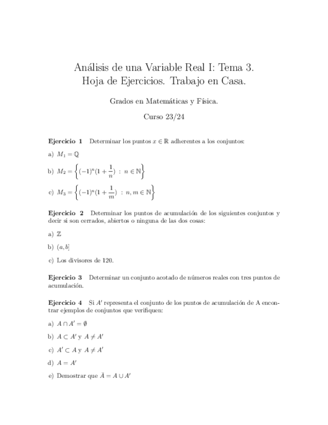He publicado nuevos ejercicios de 1º Cálculo I: hojas con soluciones 2023/2024