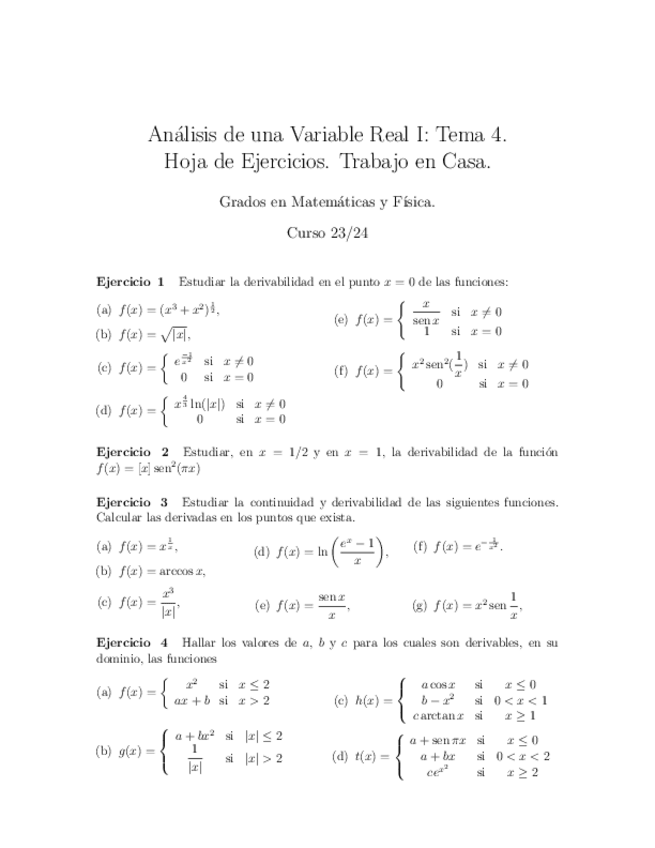 He publicado nuevos ejercicios de 1º Cálculo I: Ejercicios de sucesiones, continuidad y derivabilidad defunciones