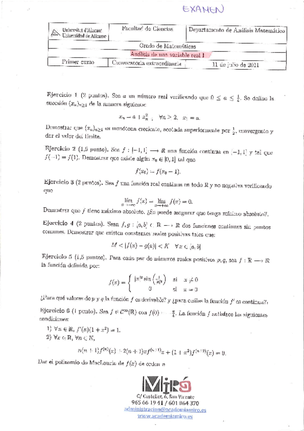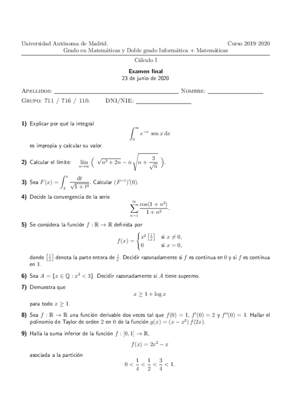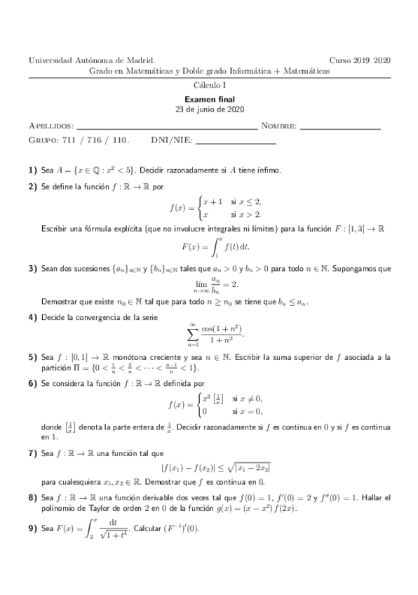 He publicado nuevos examenes de 1º Cálculo I: Extraordinaria-2020-Calculo-I.pdf