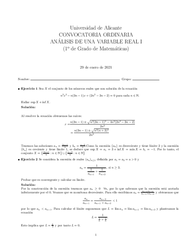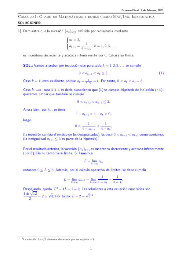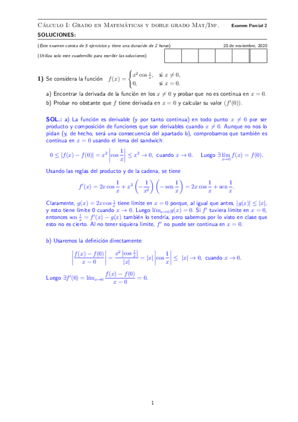 Exámenes Resueltos 2020-2021 Cálculo I
