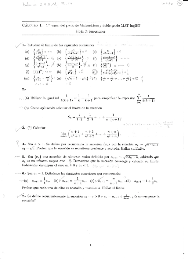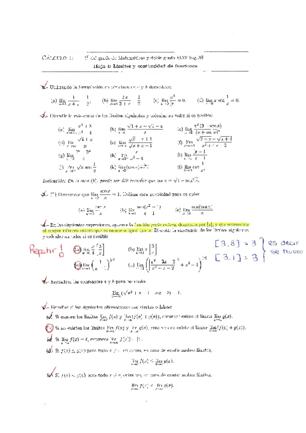 He publicado nuevos apuntes de 1º Cálculo I: Hojas resueltas