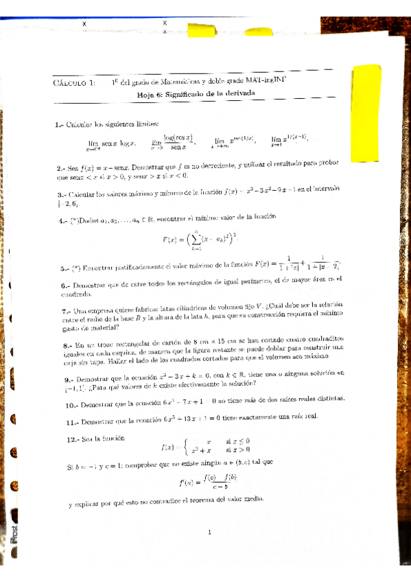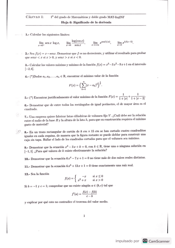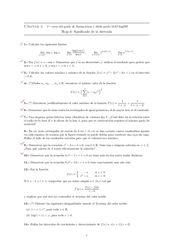 He publicado nuevos ejercicios de 1º Cálculo I: HOJASEJS 21/22