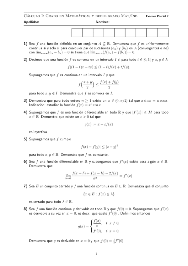 He publicado nuevos examenes de 1º Cálculo I: Exámenes Resueltos 2020-2021 Cálculo I
