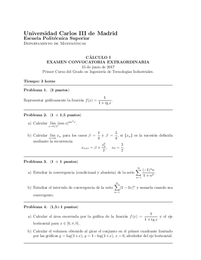 He publicado nuevos examenes de 1º Cálculo I: Soluciones Extraordinaria