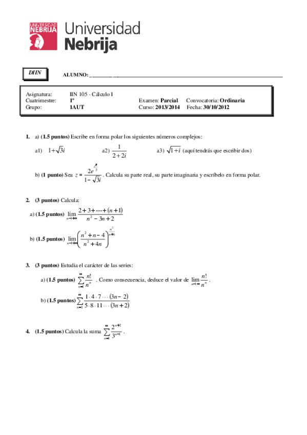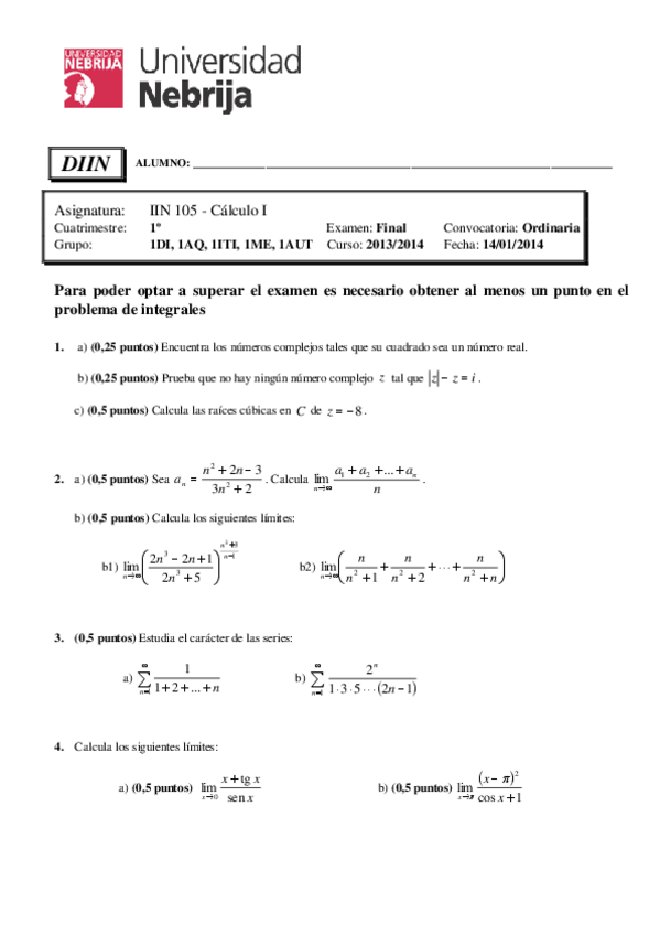 He publicado nuevos examenes de 1º Cálculo I: OrdinarioCalculoI1213.pdf