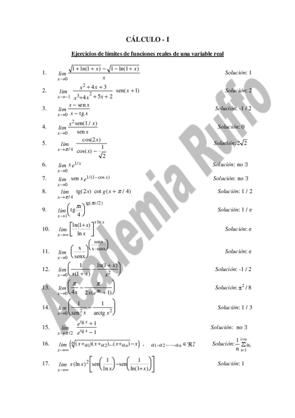 soluciones ejercicios cálculo 1