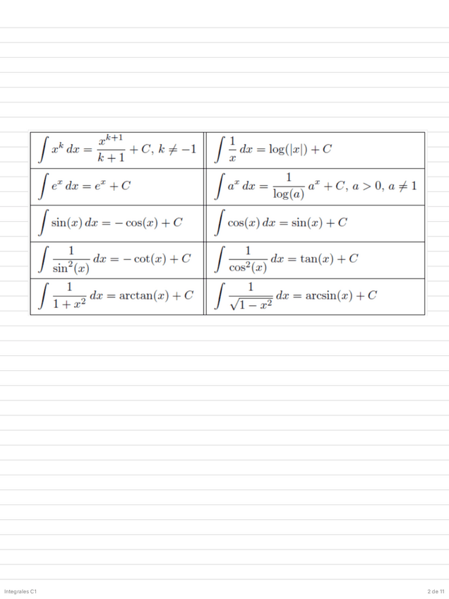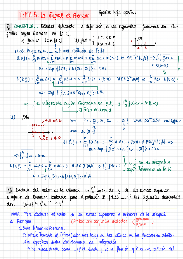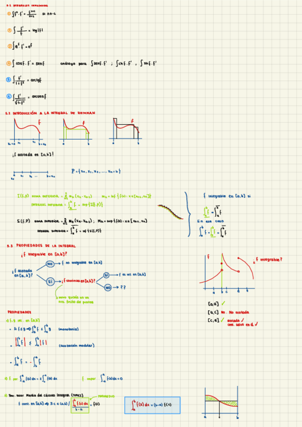 Resumen de los apuntes del Tema 5 - La Integral, de Cálculo I, con todos los tipos y ejemplos resueltos de cada método de resolución de integrales