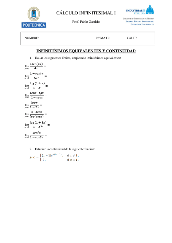 He publicado nuevos ejercicios de 1º Cálculo I: EJERCICIOS-LIMITES.pdf