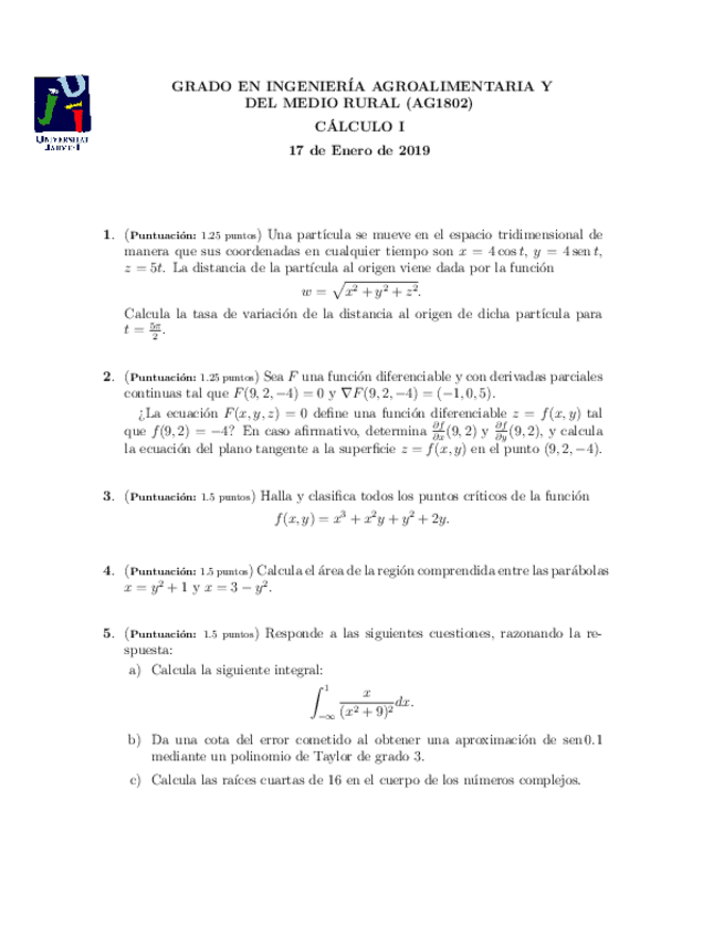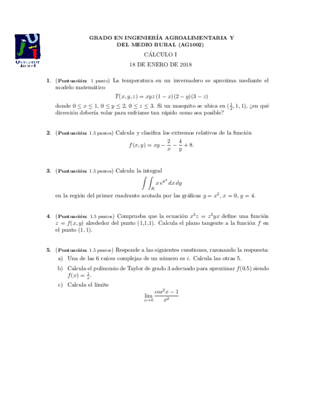 Exámenes cálculo 1